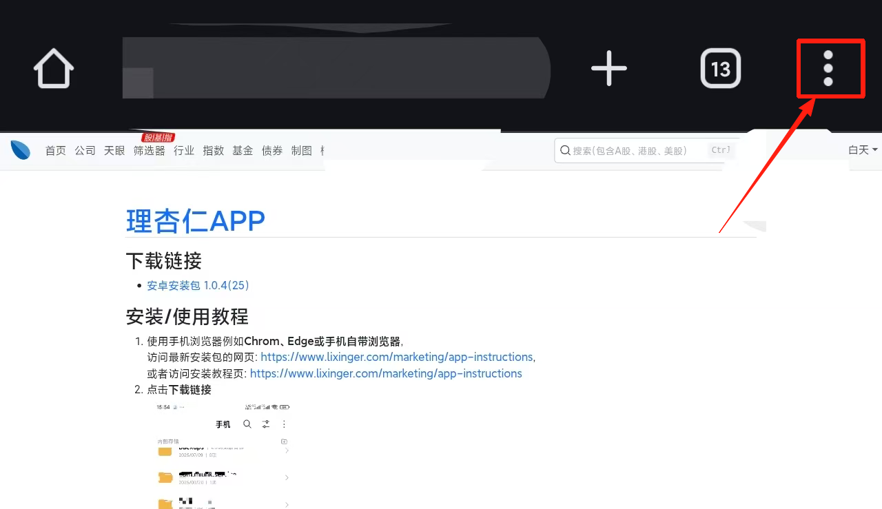访问最新安装包的网页: https://www.lixinger.com/marketing/app-instructions,