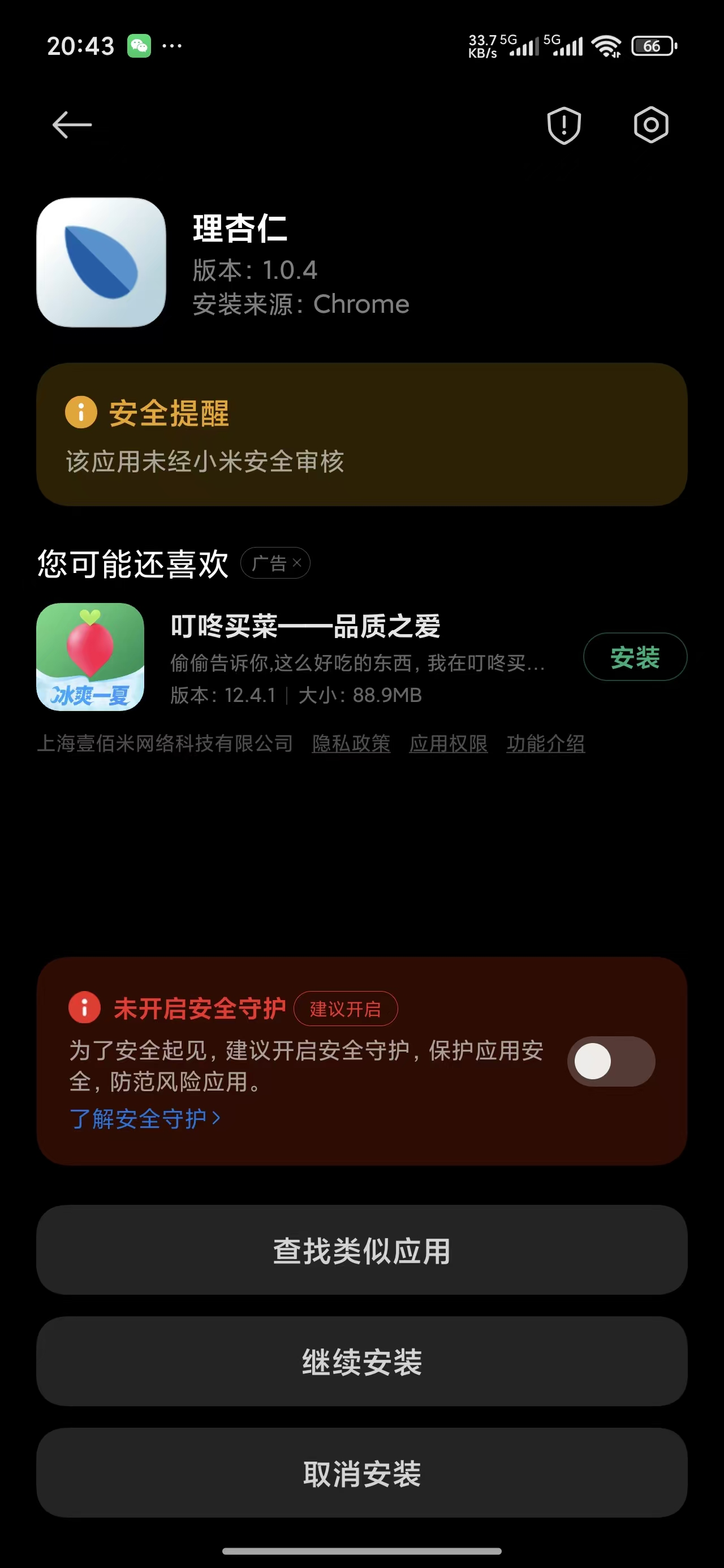 - 如果手机未开启类似安全守护类的系统保护,您可以直接安装App。